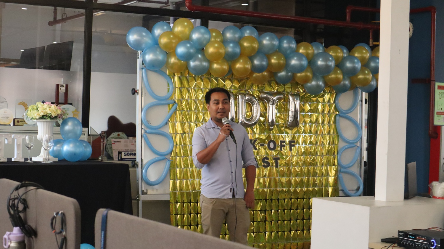 In one of the most dynamic segments of the day, a series of rapid-fire “shout-outs” saw Department Managers and Supervisors—including Mayrine Derecho (Sr. Technical Manager), Desiree Ann Allado (Marketing Manager), Joseph Flores (Sr. Finance Manager), Marife Loste (Sr. HR Supervisor), Jeomar Callo (Logistics Supervisor), Joem Rivera (Purchasing Assistant), and Darryl Menta (Business Automation Manager)—take turns celebrating specific team milestones and operational goals with infectious enthusiasm. This spirit of recognition peaked during the ceremonial raising of glasses led by the CEO and the MDTI Team, creating a unified moment of pride that transitioned into a final motivational send-off.